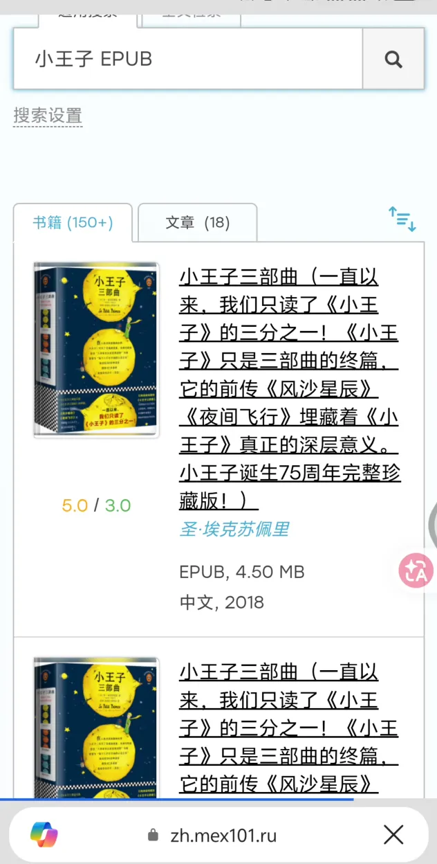 如果你想下载特定格式的书籍,可以在书名后面进行检索。比如你想下载 EPUB格式的《小王子》,直接输入"小王子 EPUB"即可检索。