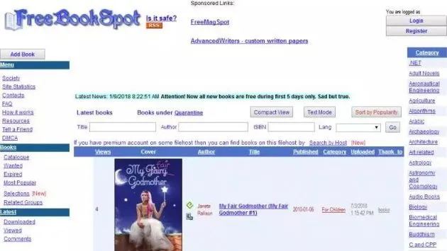 Free Book Spot是一个免费英文电子书大全网站,它提供有4485本免费电子书,分为96个分类,高达71.97GB 。