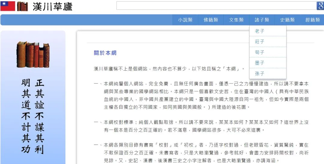 漢川草廬只是一個喜歡文史哲,住在臺灣的中國人所建造的後花園。