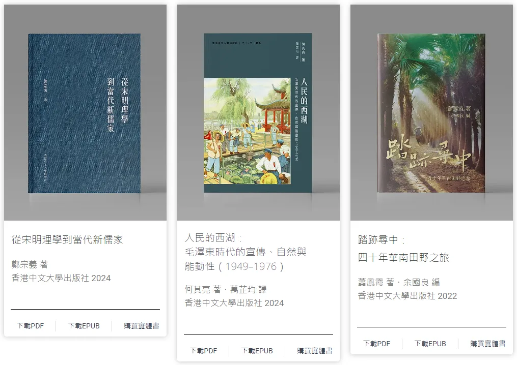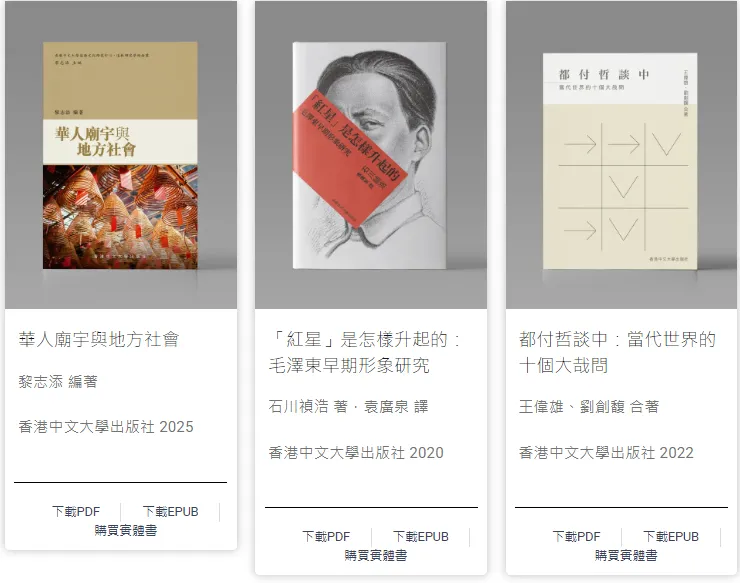 - 這些書籍都將免費開放予公眾閱讀、下載、取用和傳播。