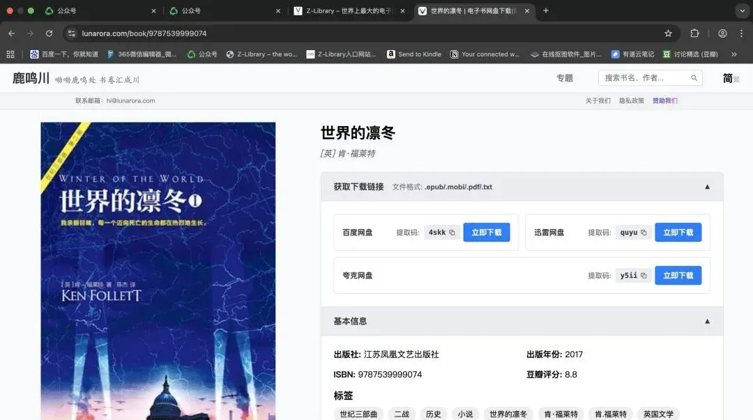 鹿鸣川(Lunarora)• 网址:lunarora.com• 无需登录、界面简洁、没有广告、一键下载,支持EPUB/MOBI/PDF/TXT等多种格式,适合强迫症选手入手。