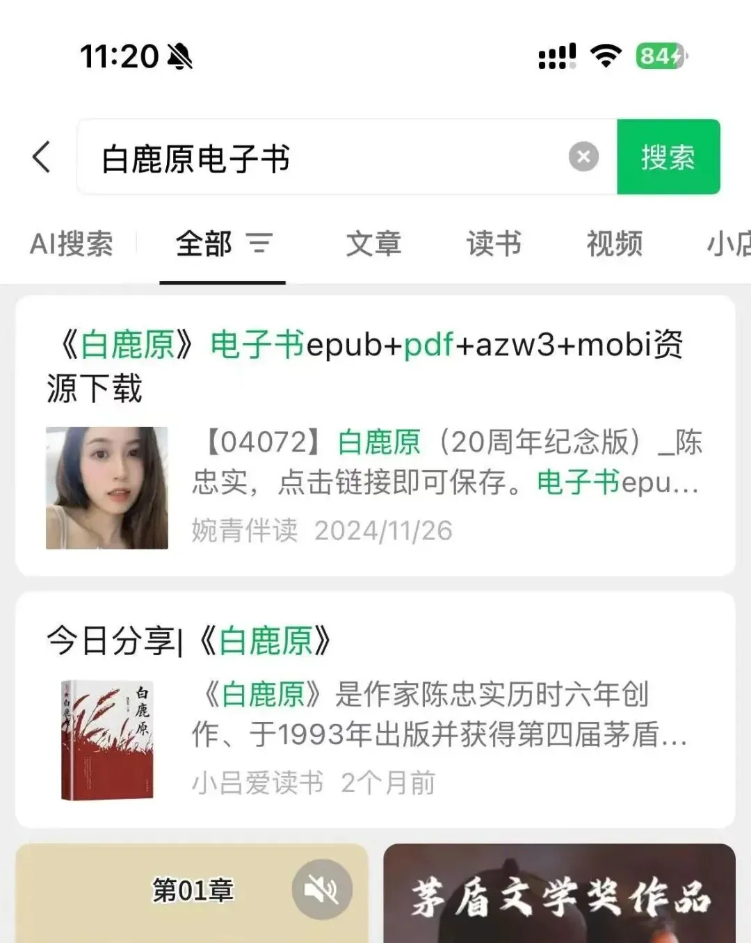 这个小功能可能很多书友没发现,通过搜一搜可以搜到很多网友已经分享的书籍,基本都是免费的非常方便。