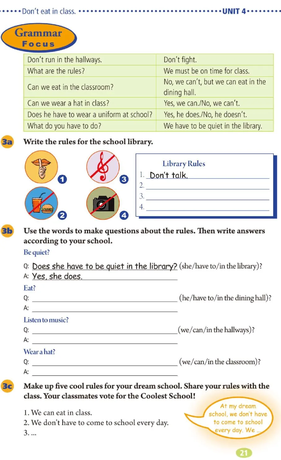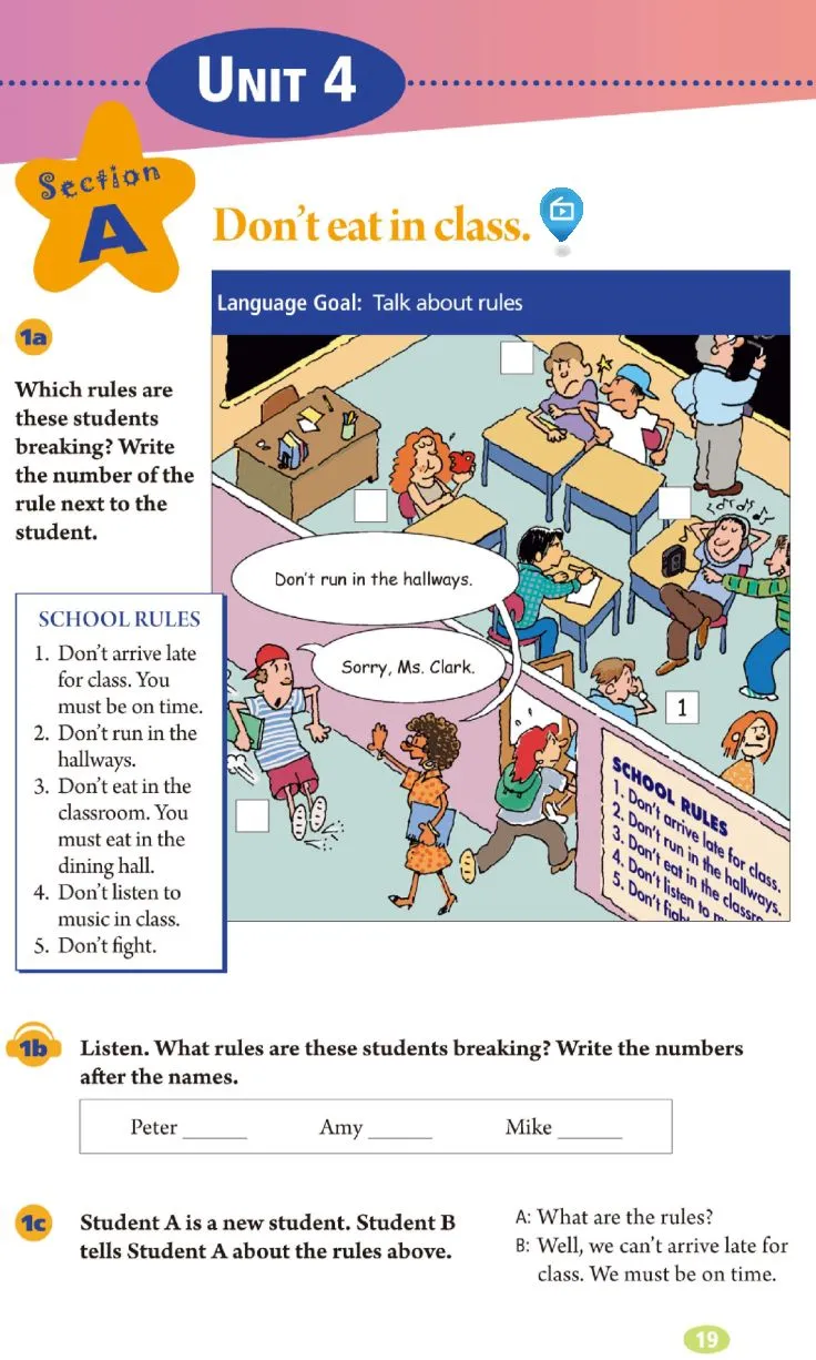 Unit 4 Don't eat in class.