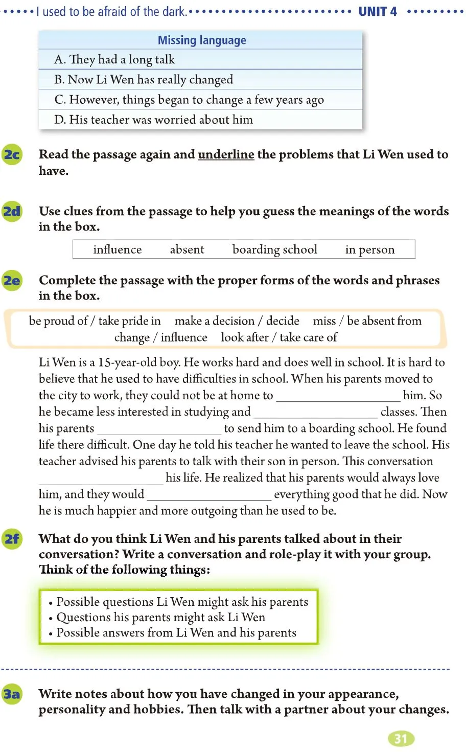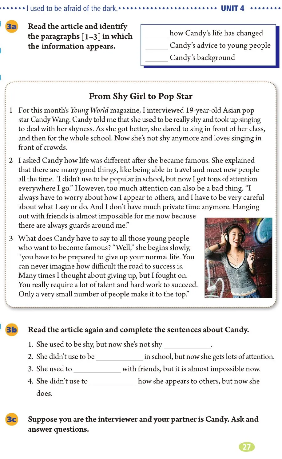 Unit 4 I used to be afraid of the dark.
