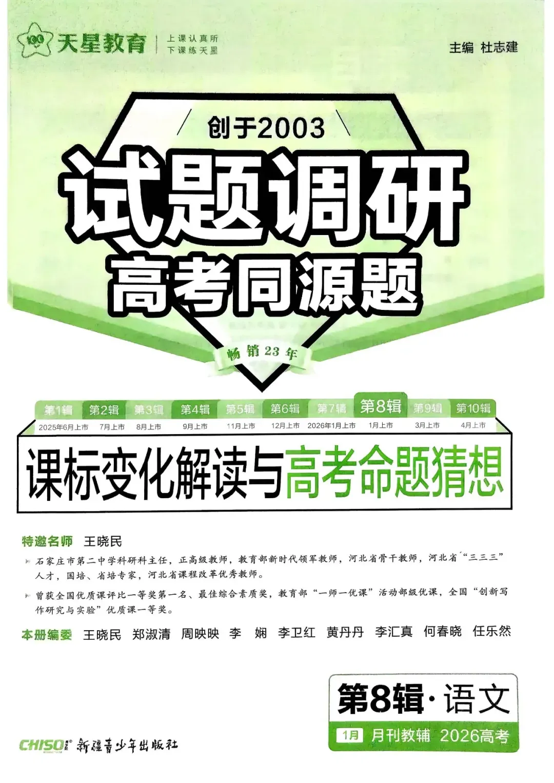 点击“阅读原文”,可下载“2026《高考试题调研•第8辑》语文-课标变化解读与高考命题猜想”。