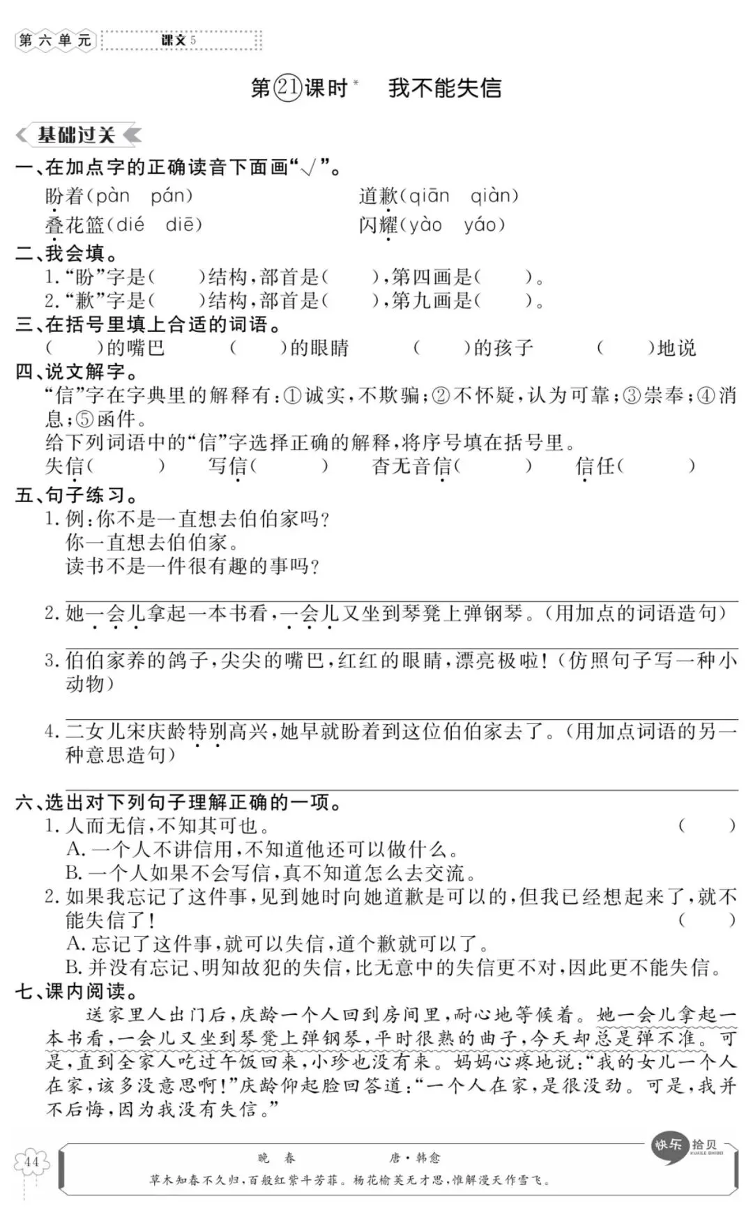 高效课时六年级语文下电子书