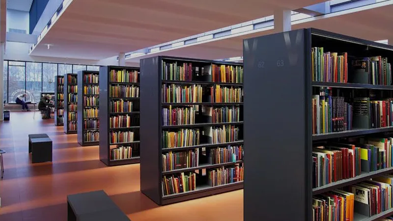 图书馆书架上的纸质书收藏