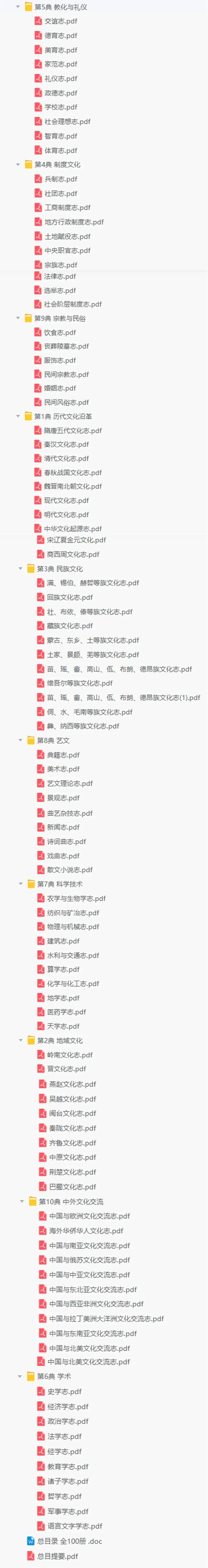 一套全面介绍中华文化的百科全书,包含丰富的历史、文化、艺术、科学等方面的内容。本资源涵盖第6典学术、第9典宗教与民俗、第7典科学技术等多个领域,共数十册,包括总目录、总目提要以及各地区的文化志。这些文献详细记录了中华文化的深厚底蕴和丰富多样性,为研究者提供了宝贵的资料。