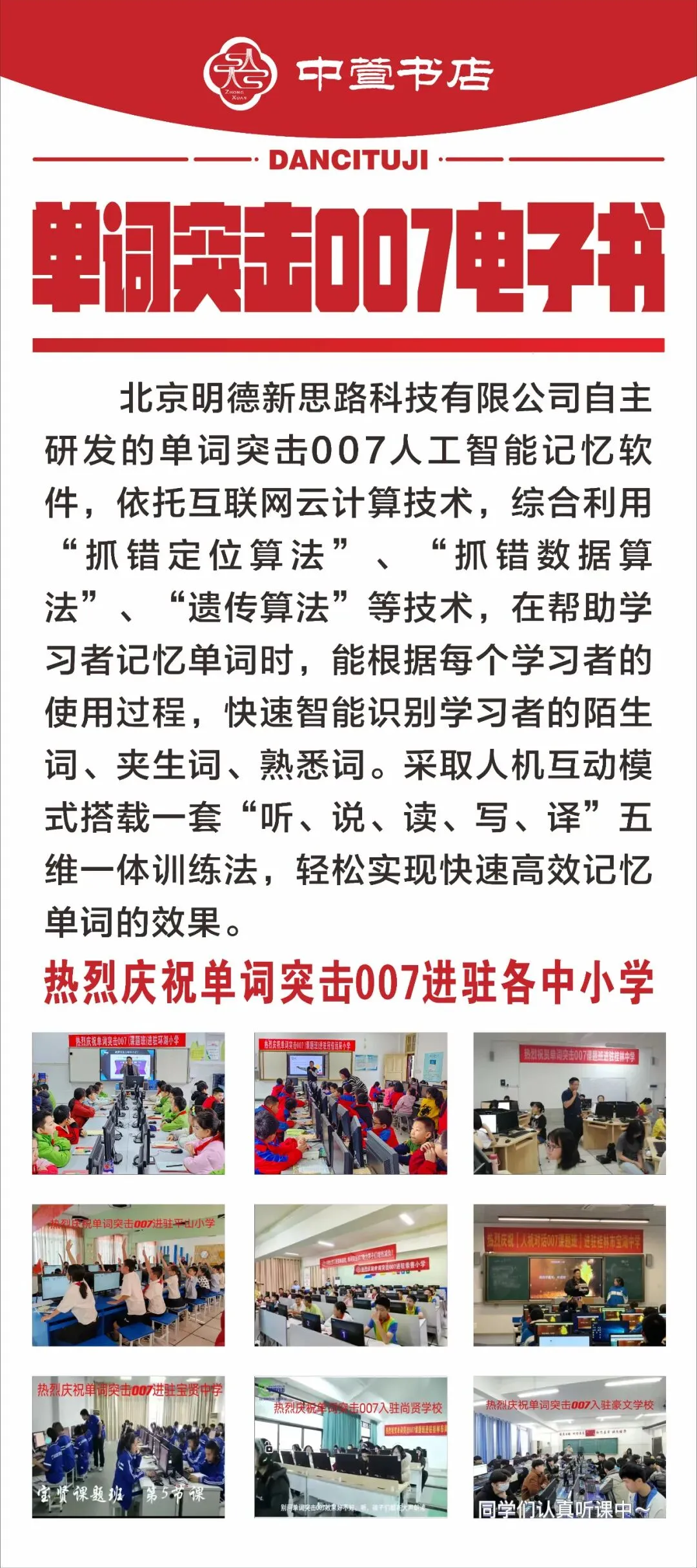 店内提供正版图书、文具及文创产品,主营单词突击 007 智能训练系统。该系统拥有中宣部批准的电子出版物刊号,属于正规合规的智能教辅产品,能帮助孩子高效提升英语单词记忆效率,轻松攻克单词难关!!!