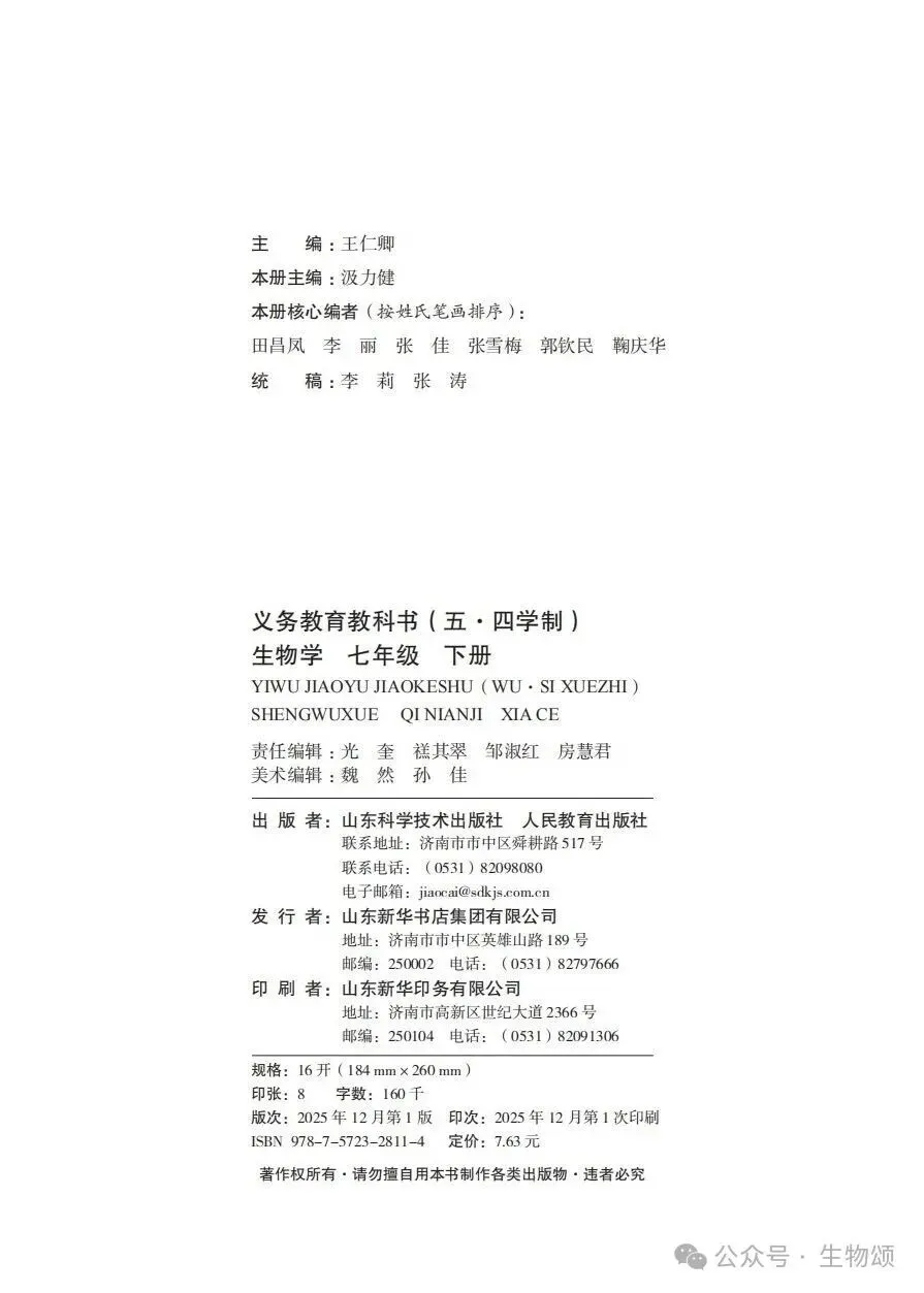 24版(鲁科版)生物七年级下册电子书