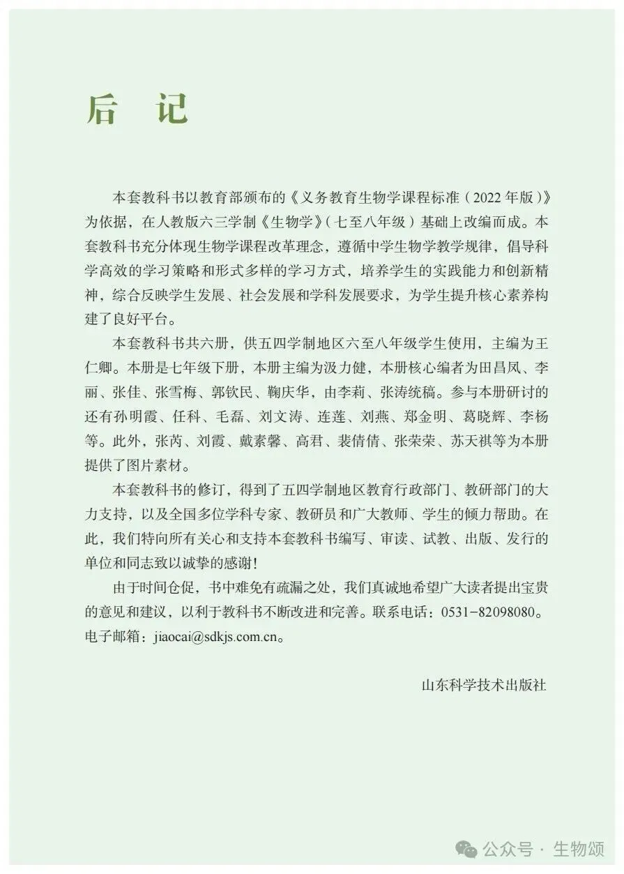 >24版(鲁科版)生物七年级下册电子书