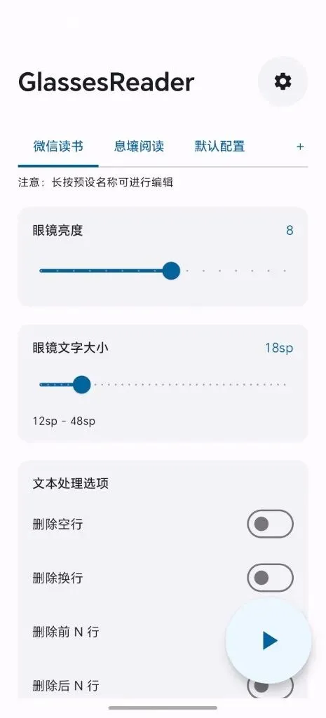 GlassesReader进行设置