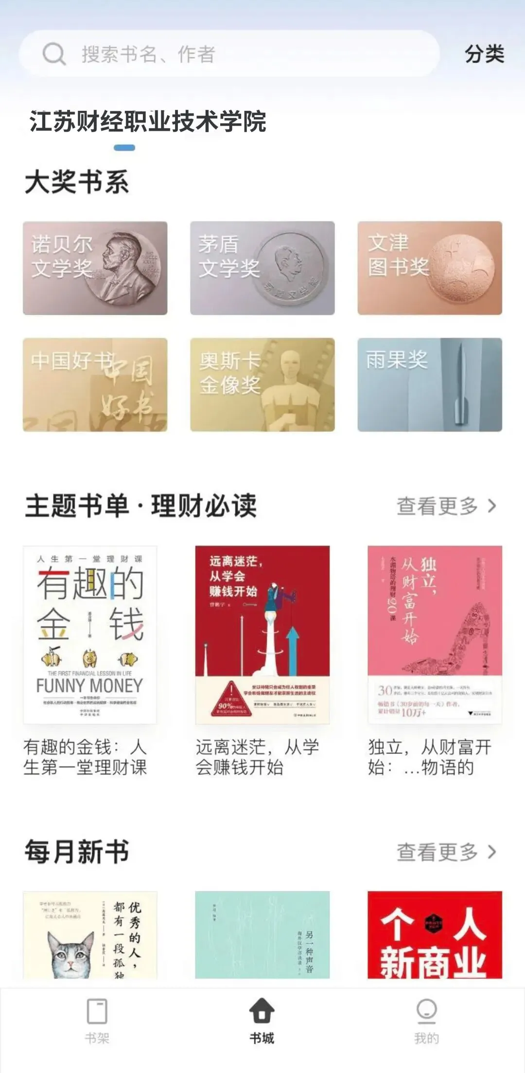 掌阅精选与国内外1000多家优质的版权方合作,定期更新图书,新书/畅销书/豆瓣高分/大奖书系图书占比高。其中包含14个全球及国内各大权威图书奖项,如国内的茅盾文学奖、鲁迅文学奖,国外的雨果奖、银河奖、芥川奖,童书界的凯迪克大奖等。