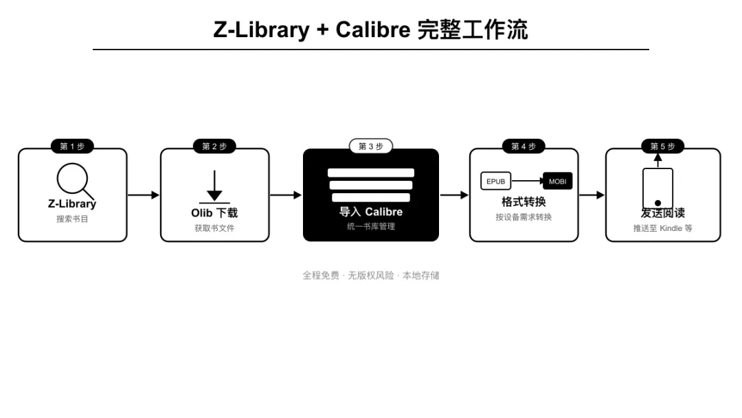 Z-Library + Calibre 完整工作流这是大多数人用 Calibre 的核心场景:从网上下载电子书,导入管理,转换格式,发到 Kindle。