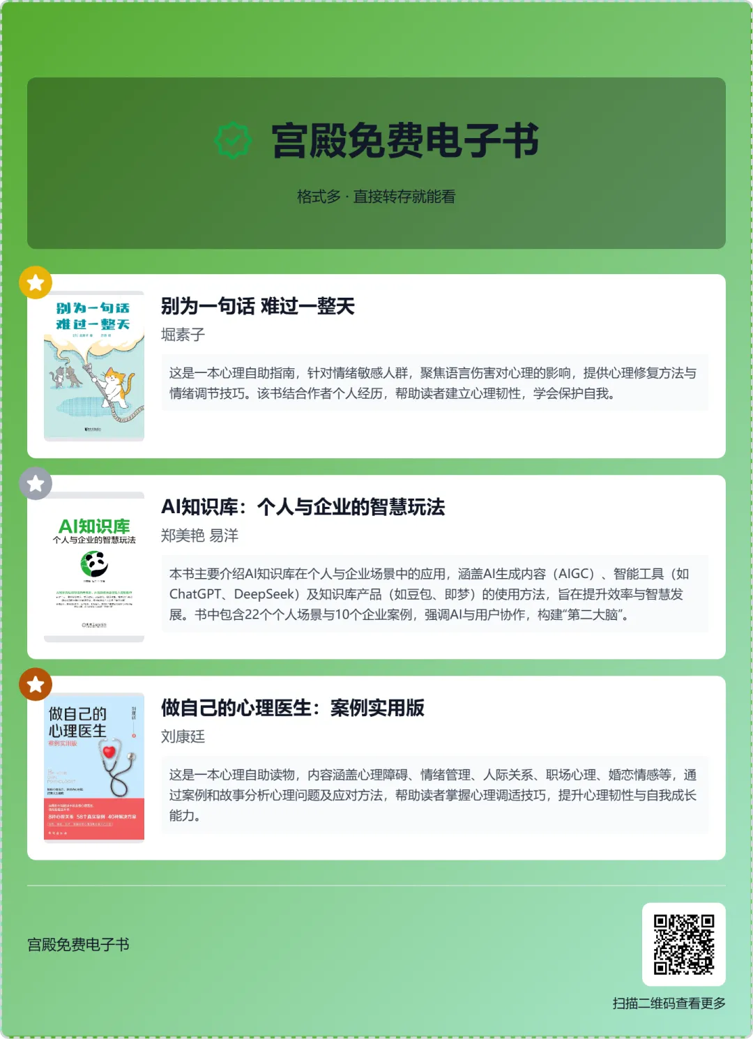 >【免费电子书】别为一句话-难过一整天,AI知识库:个人与企业的智慧玩法,做自己的心理医生:案例实用版