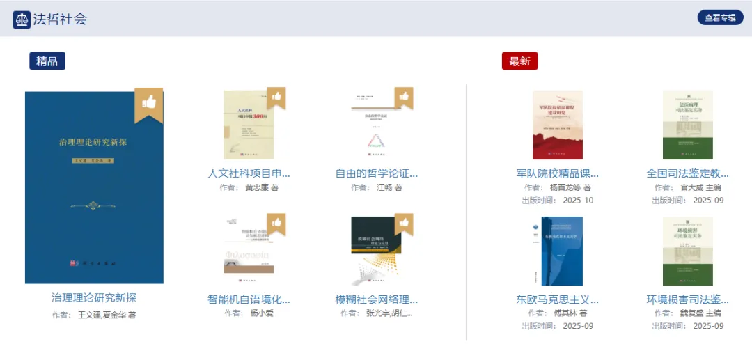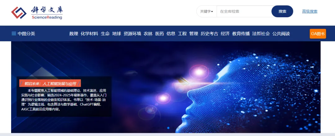 (1)阅读便捷:多终端在线或下载阅读,界面清晰、导航便捷,分为15个学科辑,首页显示精品推荐和最新图书,采用WebPDF技术增强在线阅读和使用的良好体验。