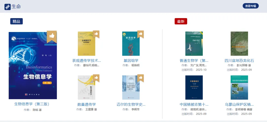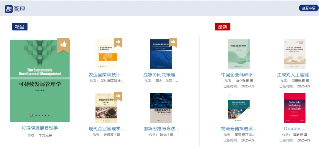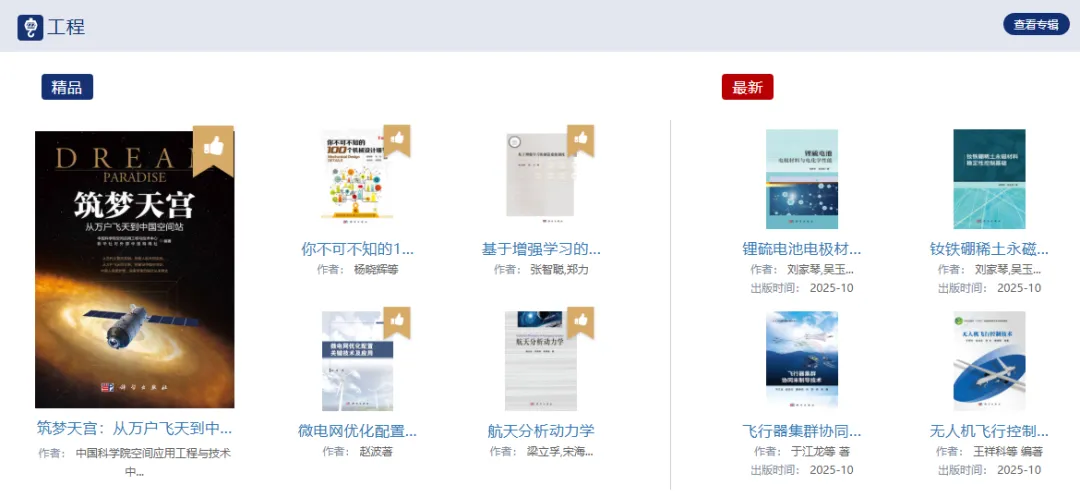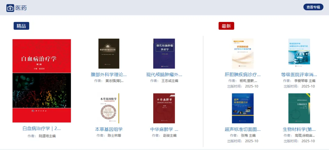 包括专著、教材、图集、报告、工具书、科普等,满足科研、教学、管理、大众等各个系列用户的需求。