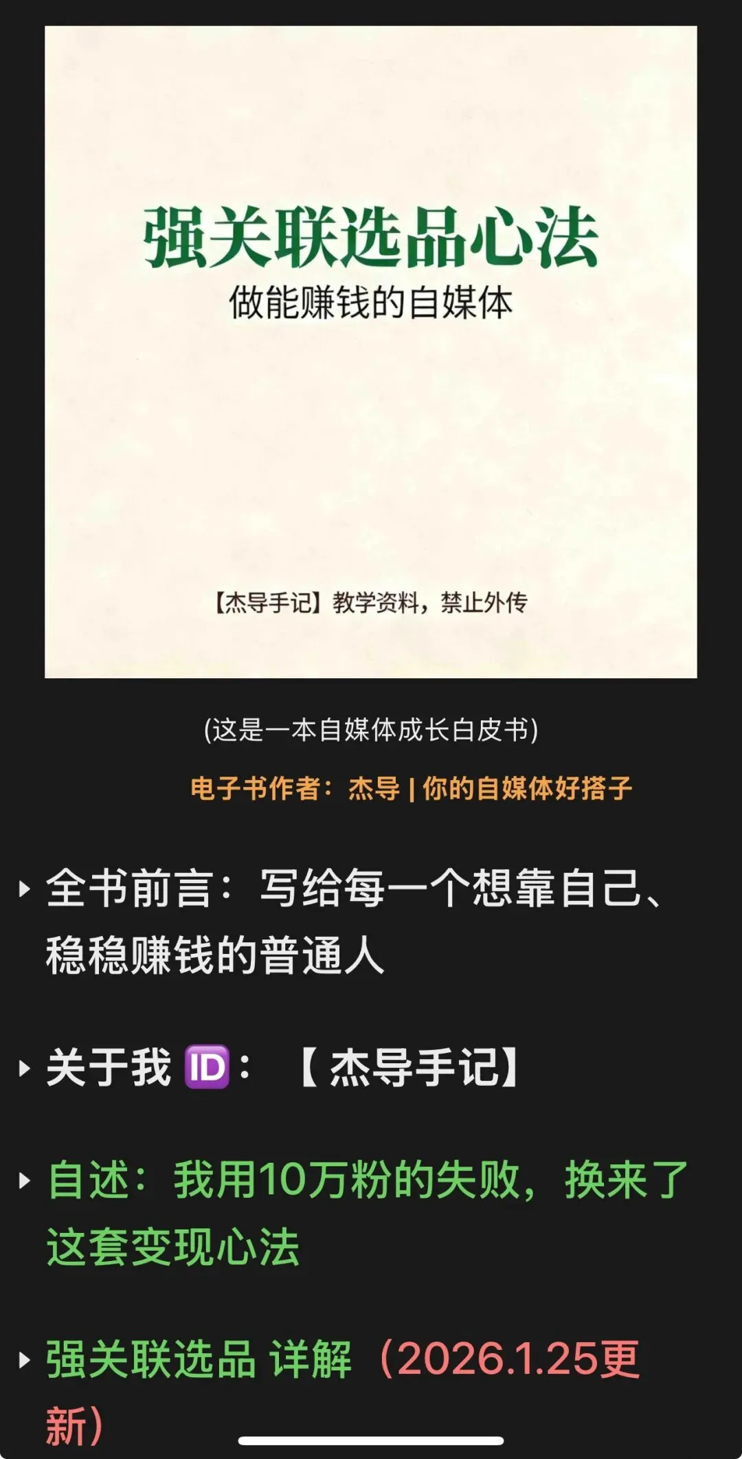 你们在电子书里看到的每一个章节、每一个卡点、每一段解决方案,几乎都来自我带学员过程中,真实遇到的问题、真实踩过的坑、真实走通的路径。
