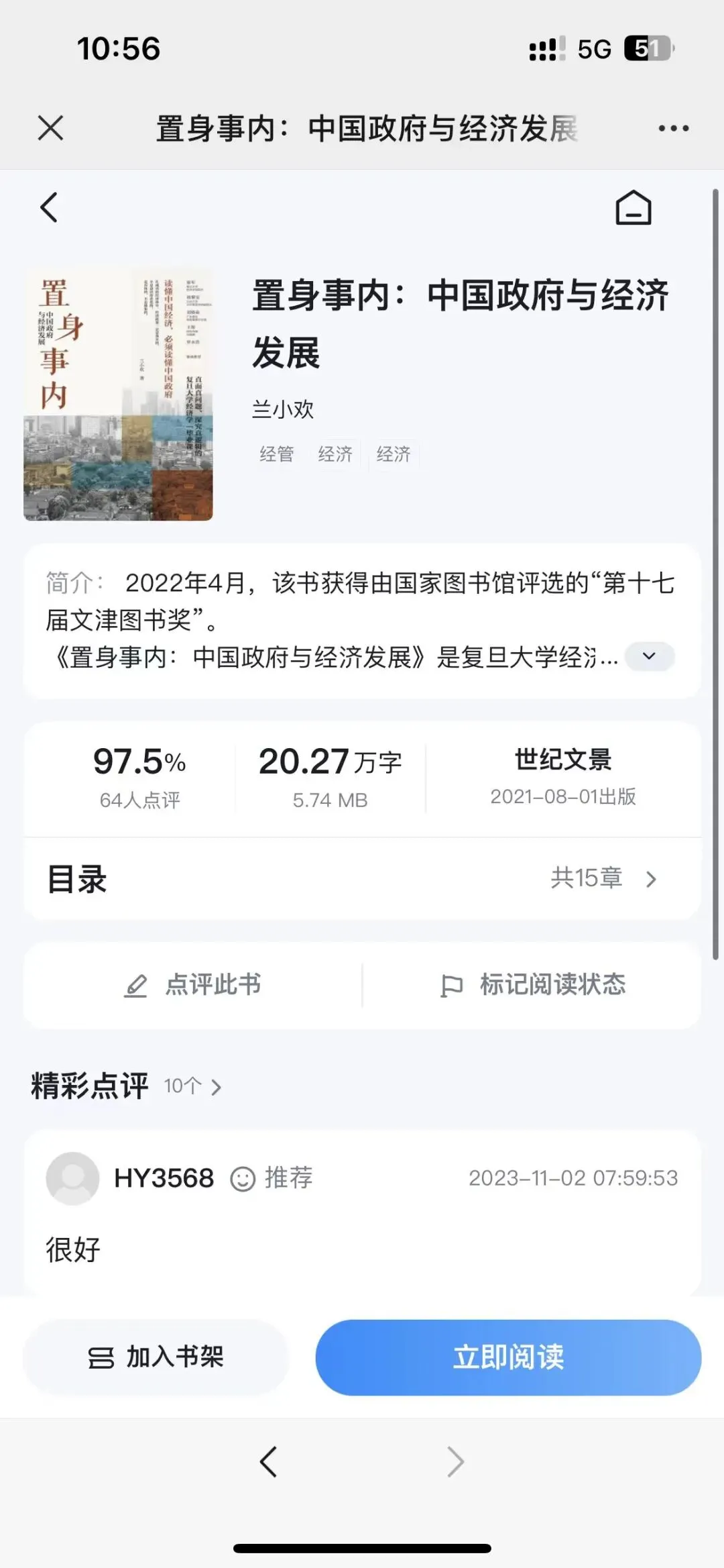 电子书阅读 | 2023年度预约图书之《置身事内:中国政府与经济发展》
