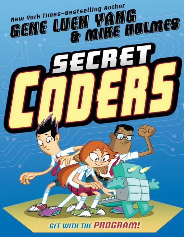《Secret Coders》是一部将编程教学与悬疑冒险故事巧妙结合的图像小说系列,由美国著名漫画家、前高中计算机教师杨谨伦(Gene Luen Yang) 创作,插画家迈克·霍姆斯(Mike Holmes) 绘制插图。该系列于2015年至2018年期间出版,全系列共6册。