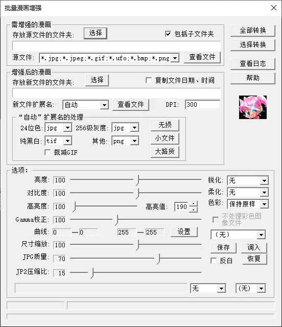 2、ComicEnhancerPro工具是主要用来调整图片大小、清晰度的,相关参数设置较多,也复杂一些,可以参考相关教程,多尝试几次,加以比较。