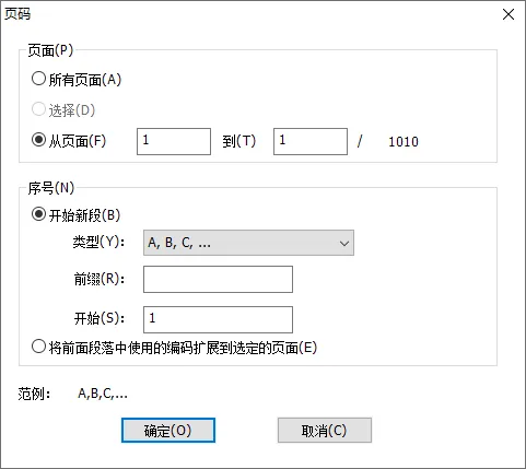5、此时PDF书籍还没有目录,用福昕高级PDF编辑器中的“格式化页码”功能,将正文以外的页码,调整为不一样格式,把序号改为A,B,C,…类型的。这样正文和非正文页码就会区分开编排,正文从1开始。