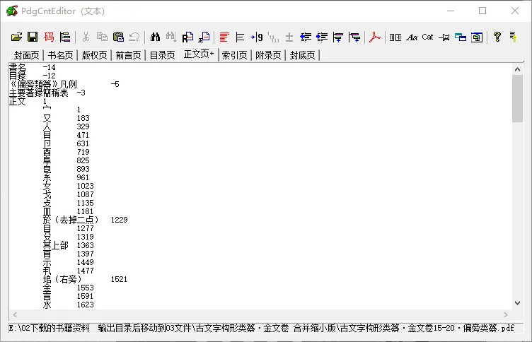 6,PdgCntEditor是专门的目录编辑工具,有的版本的UnicornViewer自带。也可单独使用。目录编辑可以参考相关教程。PdgCntEditor可以从原来的PDF中复制过来,但是页码需要调整,在原来页码基础上统一加上一个数,此时可能用到一些电子表格的功能。
