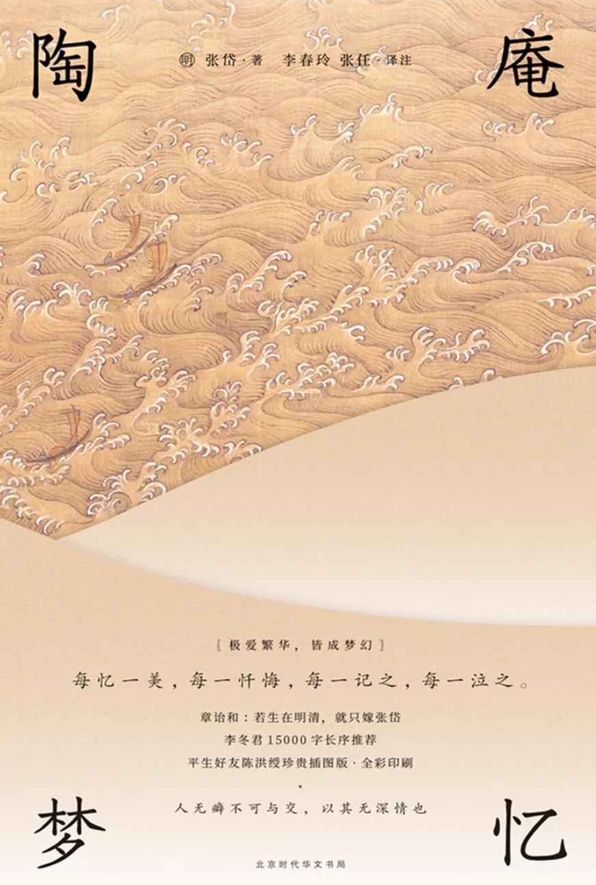 本书是明代文学家张岱的回忆录式散文集,书中记录了西湖的雪、秦淮河的灯、金山寺的锣鼓、绍兴的茶与泉,以及各类节庆、美食、戏班、园林。