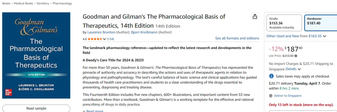 这本书一直是描述治疗药物在生理学和病理生理学中作用和用途方面的权威与准确性巅峰。该教材巧妙地平衡了基础科学与临床应用,引导成千上万的医疗从业者和学生清晰理解了预防、诊断和治疗疾病所必需的药物。想要获取电子版《Goodman and Gilman's The Pharmacological Basis of Therapeutics》,请关注公众号后,发送信息:“9781264258079”,稍等小编发送下载链接。