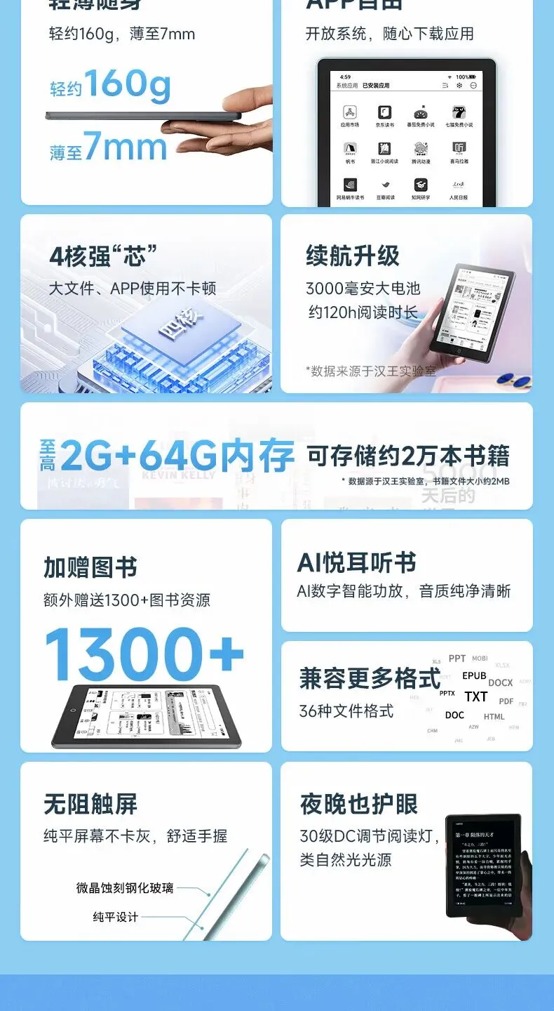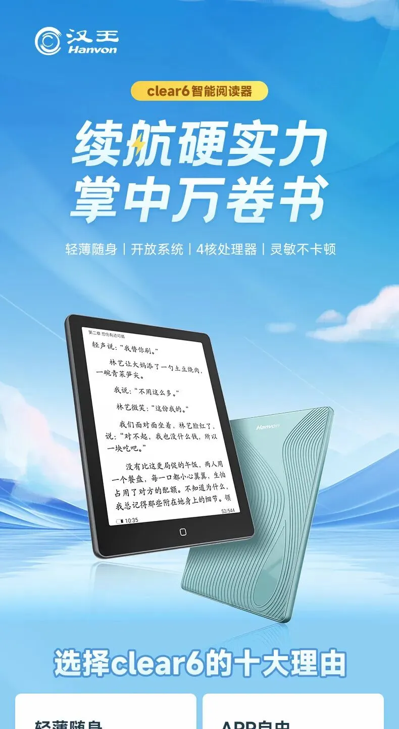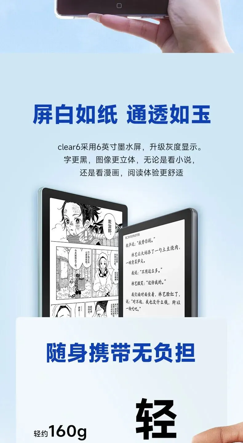 >汉王Clear6英寸电子书阅读器 墨水屏电纸书平板 智能阅读本电子纸 看书学习便携阅读 CLear 6寸冰山灰(2+3