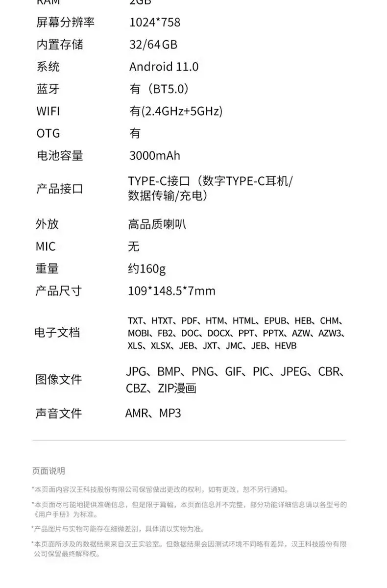 汉王Clear6英寸电子书阅读器 墨水屏电纸书平板 智能阅读本电子纸 看书学习便携阅读 CLear 6寸冰山灰(2+3