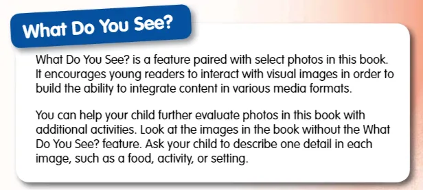 “你看到了什么?”这项功能,可以帮助孩子建立识别图片与实物关系的能力,家长可以在本书的其它图片上运用这一功能,请孩子描述在每张图片上ta所见到的至少一个细节。▼