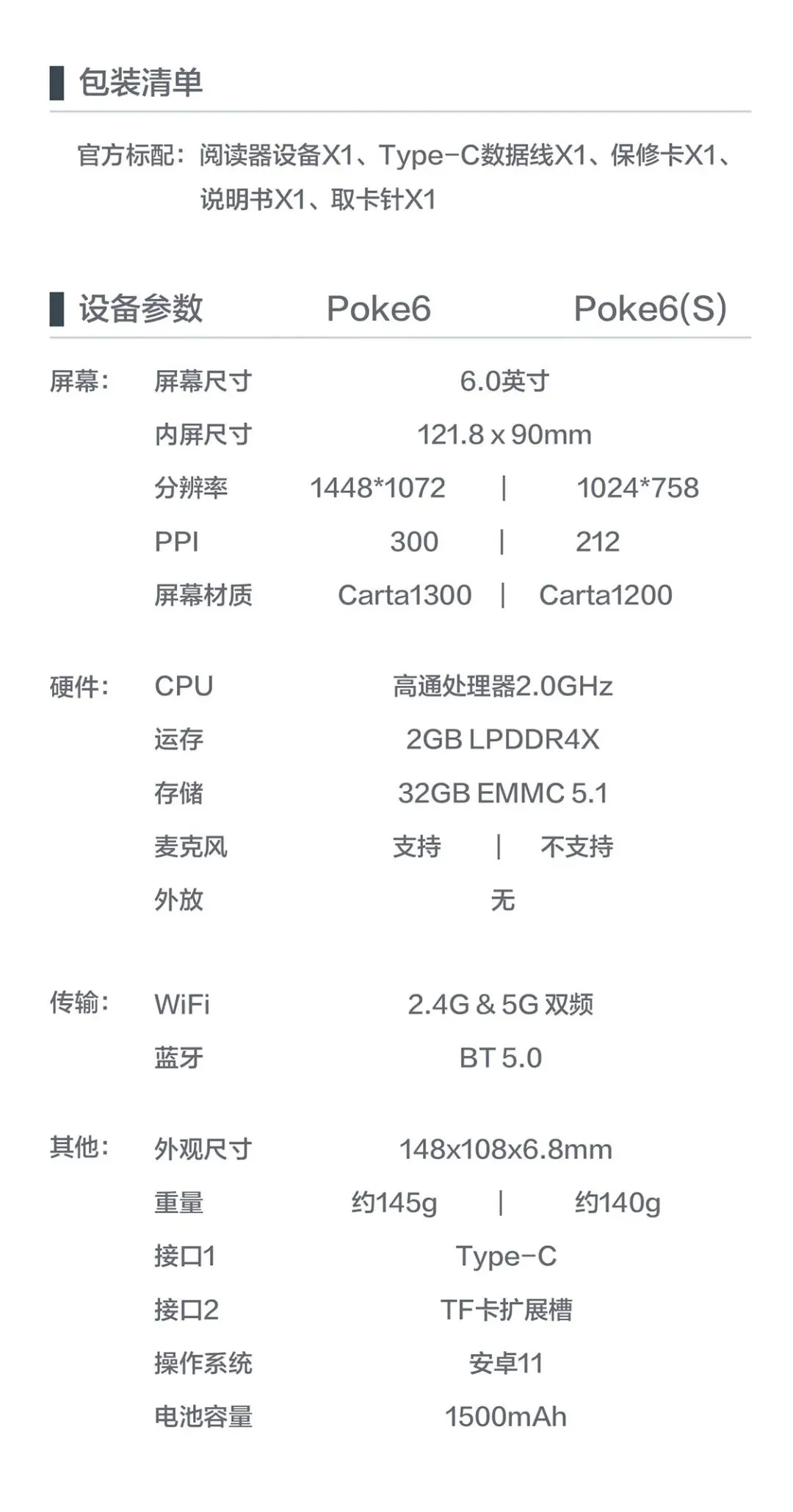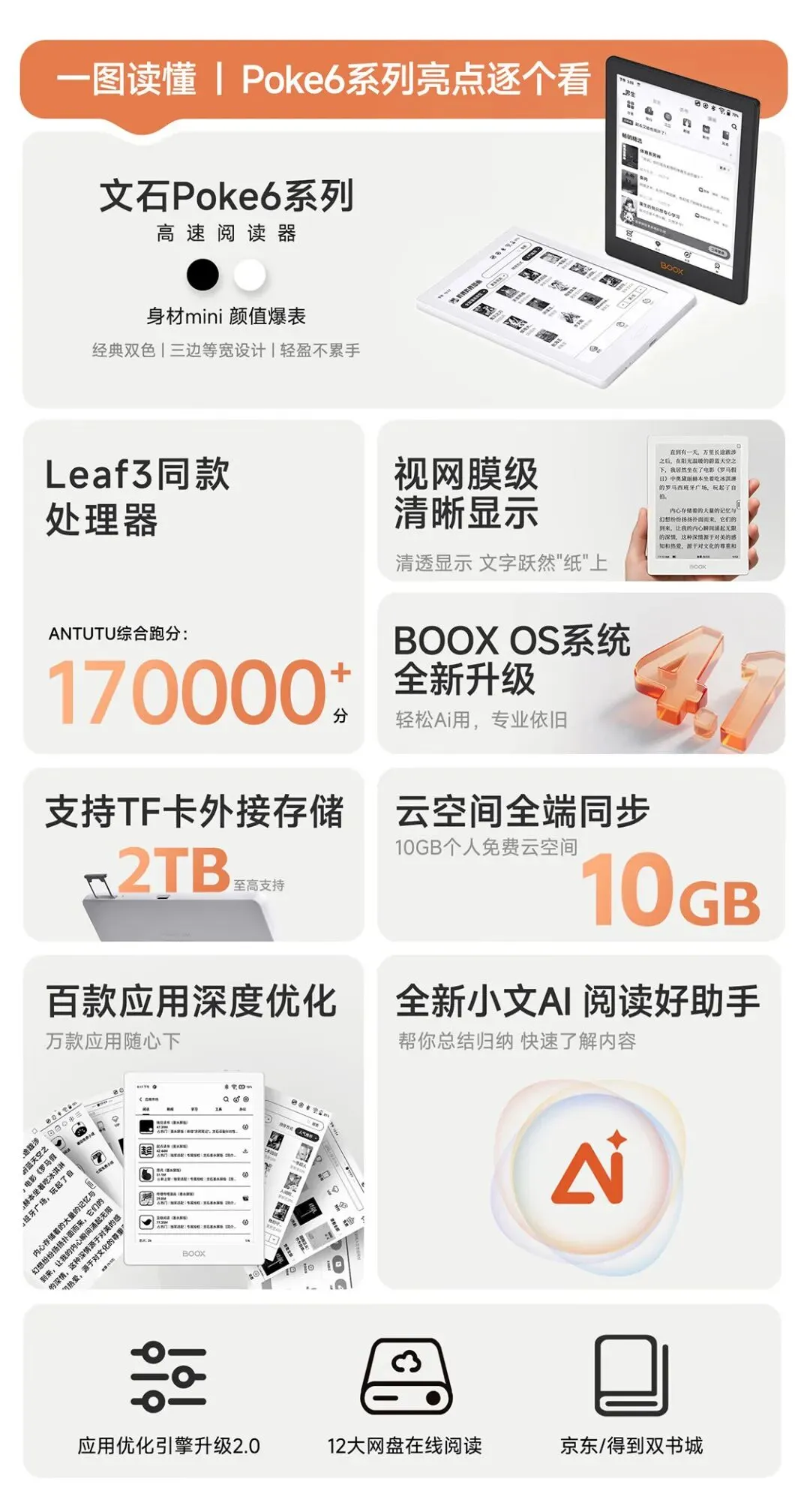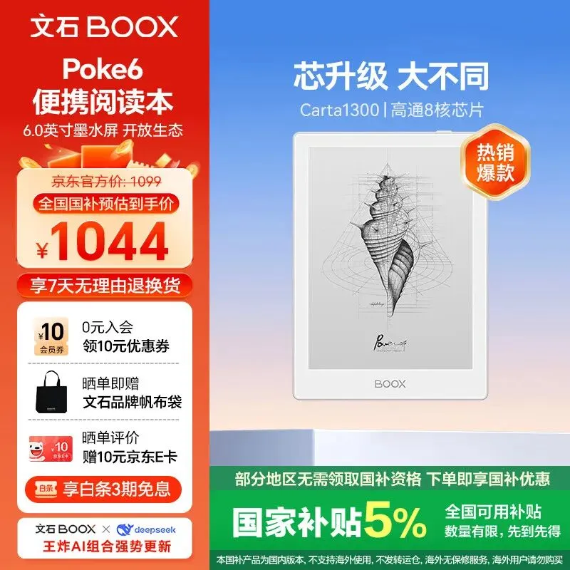 >BOOX文石电纸书Poke6 6英寸电子书阅读器墨水屏电子纸 阅览器便携看书读书学习平板电脑办公本 白色
