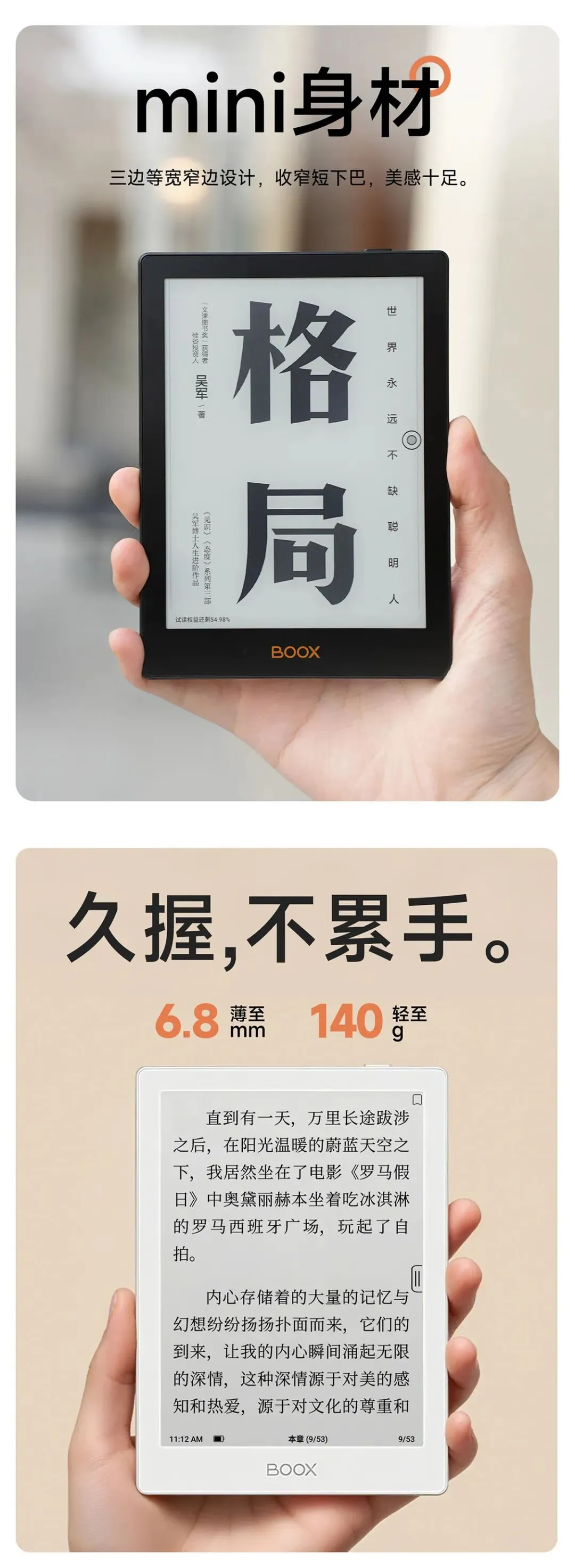 BOOX文石电纸书Poke6 6英寸电子书阅读器墨水屏电子纸 阅览器便携看书读书学习平板电脑办公本 白色