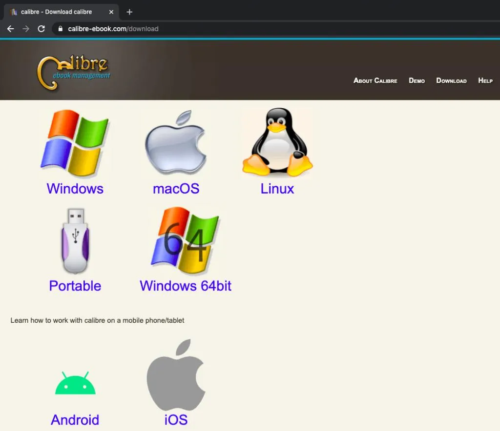 访问Calibre官网,选择对应系统版本下载。
