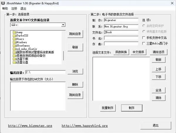 JBookMaker,一款简单易用的 Java 电子书制作软件。用起来很方便,能轻松实现 TXT 与 JAR 格式互转。只要有 TXT 文件,按几下按钮就行,单个文件、绿色软件、免费下载、免费注册。