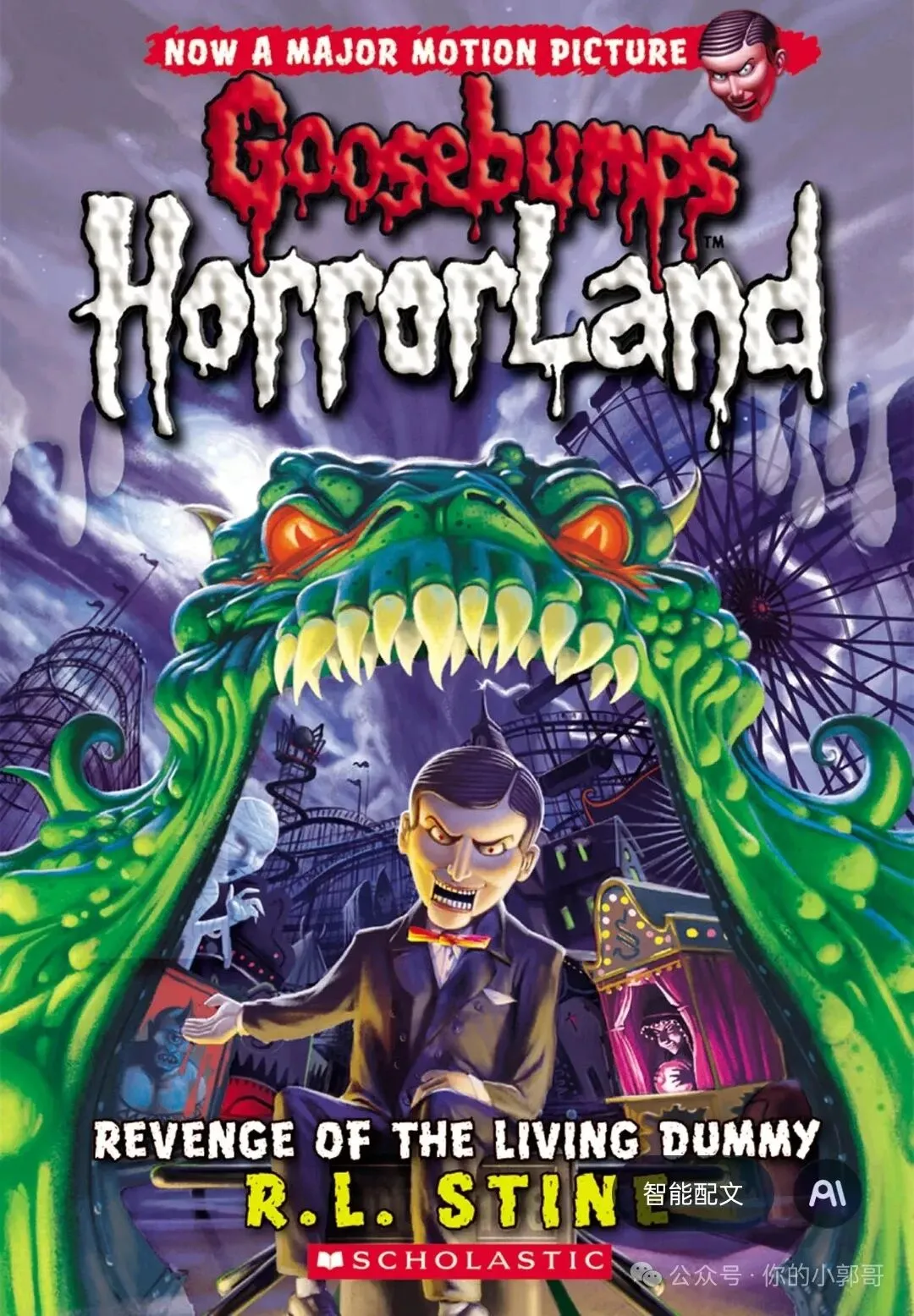 * 核心悬念:布兰妮必须和其他孩子们一起,在这个充满危险的乐园里寻找线索,试图弄清楚是谁在背后操纵这一切,以及如何才能逃出生天。本书的结尾为整个系列设下了巨大的悬念,引出后续故事中更多经典怪物的登场。这张图片展示的是著名儿童惊险小说家 R.L.斯坦(R.L. Stine)的作品。他是《鸡皮疙瘩》(Goosebumps)系列的作者,被誉为“悬念大师”和“儿童恐怖小说之王”。