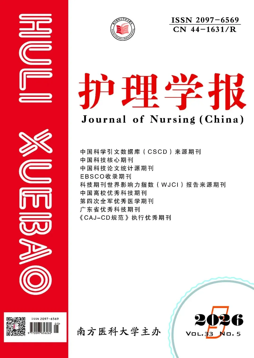 《护理学报》创刊于1995年7月,是由广东省教育厅主管、南方医科大学主办、南方医院承办的综合类学术性期刊。本刊一贯秉承“以质量求发展,以服务铸品牌”的办刊理念,注重队伍建设和人才培养,实施“质量立刊、人才强刊、国际兴刊”的发展策略,在国内护理界中享有广泛知名度和良好口碑。