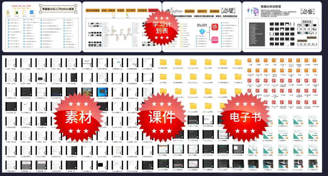 不管你是刚入门的编程小白,还是想进阶提升的职场人,不管你是想转岗数据、深耕算法,还是做Web开发、爬虫实战,这份资源都能精准匹配你的需求,省去你找资料的大量时间,直接开启高效学习模式~