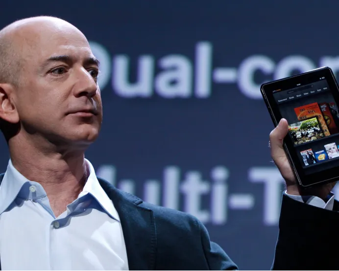 ▸亚马逊创始人杰夫・贝索斯在2011年KindleFire发布会上。目前,Kindle Fire系列也在停止更新之列。摄影:香农・斯台普/路透社