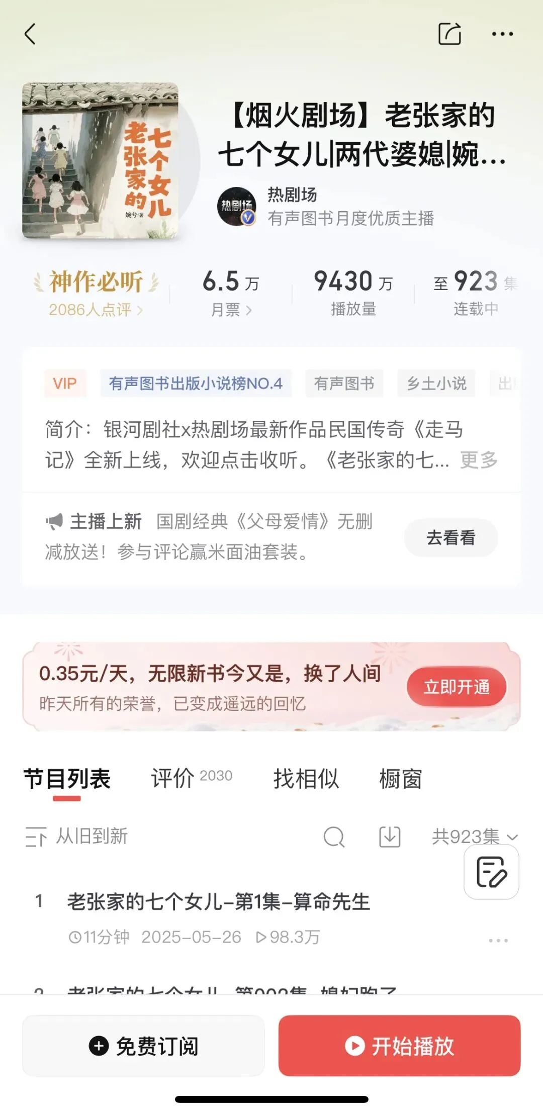 电子书的快速反馈性,使它成为了我们大多数作品版权开发的优先去向,在与平台的深度合作下,有些作品给出了让人惊艳的答卷。《老张家的七个女儿》是一部150万字的年代大作,电子书的连载我们与微信读书合作,作品每天的实时在读人数基本在一千到两千之间,飙升榜、新书榜、小说榜长期霸榜。优异的数据也体现在其他领域,《老张家的七个女儿》的有声书采取的也是连载形式,我们与喜马拉雅达成了合作,目前收听数已经超过9400万,直飙1个亿,且每日都在递增。更是有超过15家一线影视制作公司来洽谈合作,并给出了明确的合作意向,纸书的出版也在有效推进中。