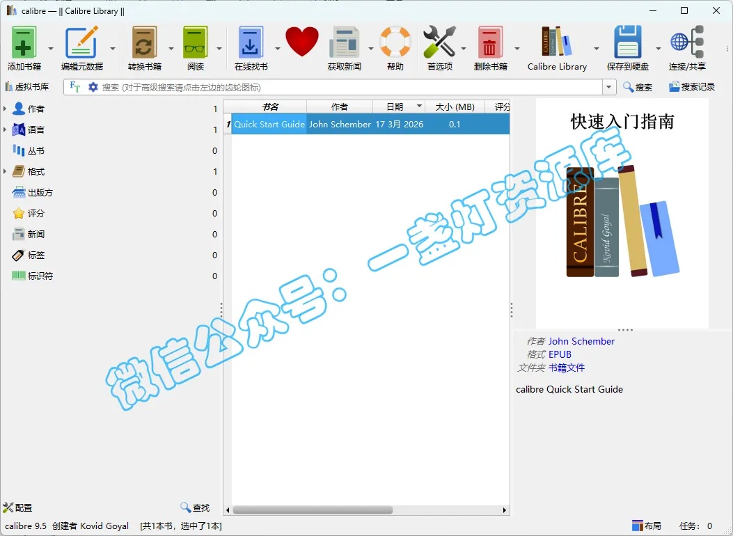 下载地址:在下面【一盏灯资源库】公众号里回复【calibre】即可获取软件